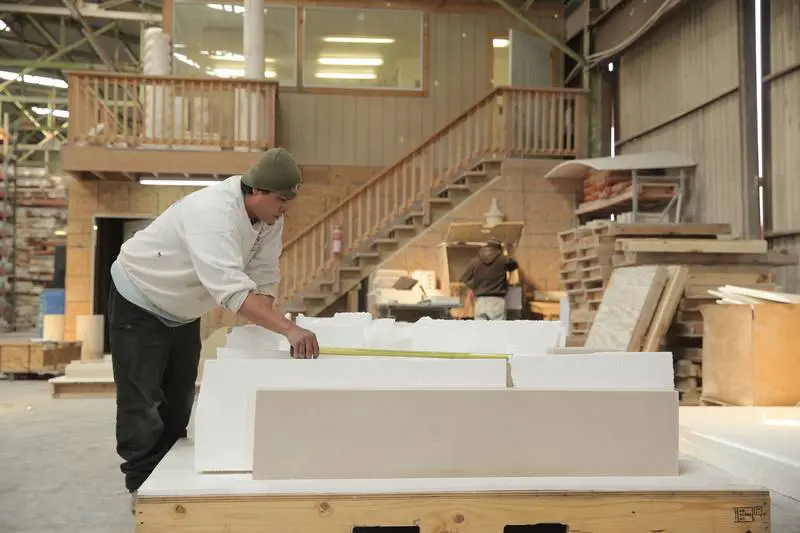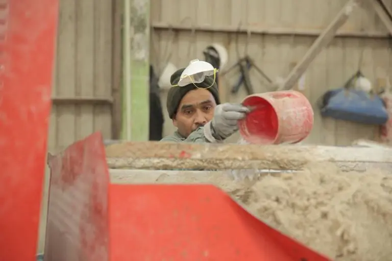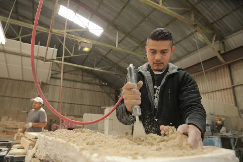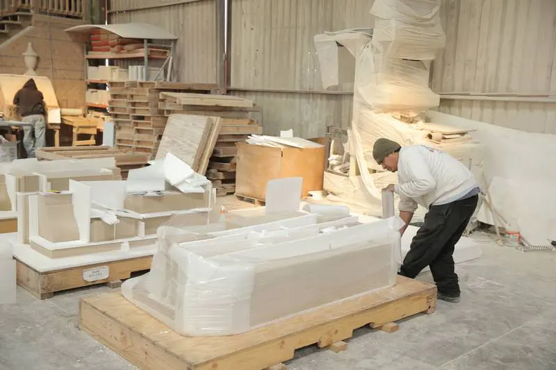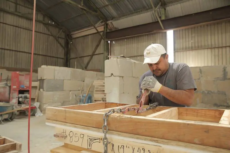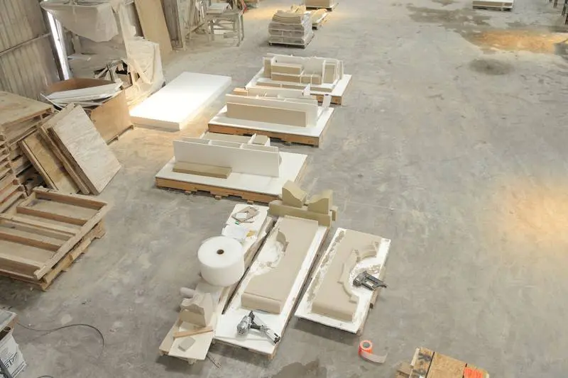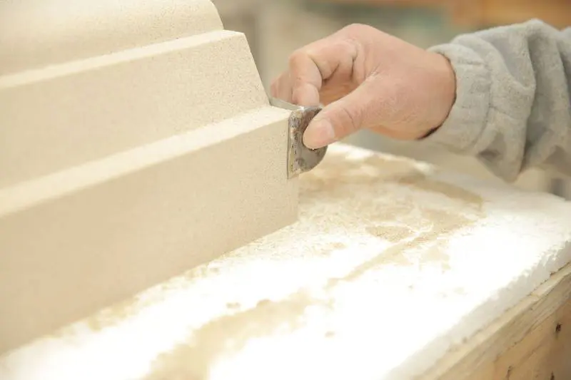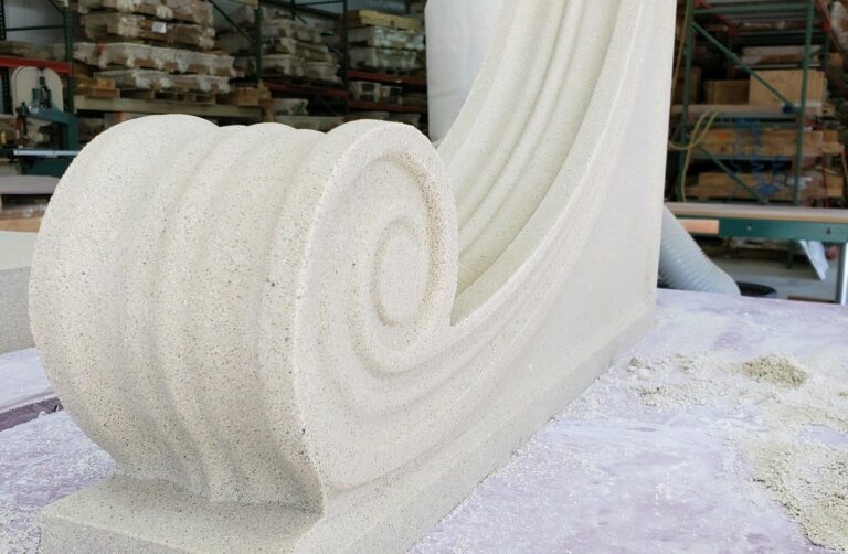 The process of making cast stone at Old World Stoneworks is a careful balance of tradition and technology. We start with a finely tuned cast stone mixture, which includes high-quality aggregates, cement, and natural pigments to ensure the finished product resembles natural stone in both texture and color. We then put this mixture into a mulling machine where it is mixed with water. This “forming” process produces a material that is as dense and durable as quarried limestone.