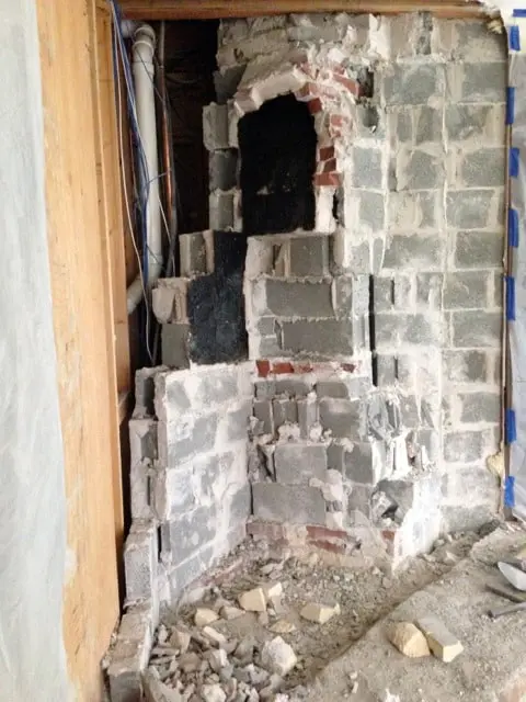 Amhurst cast stone fireplace mantel installation ← Previous Next → Demolition begins of existing fireplace