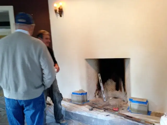 Amhurst cast stone fireplace mantel installation ← Previous Next → Homeowner is beginning to install the mantel