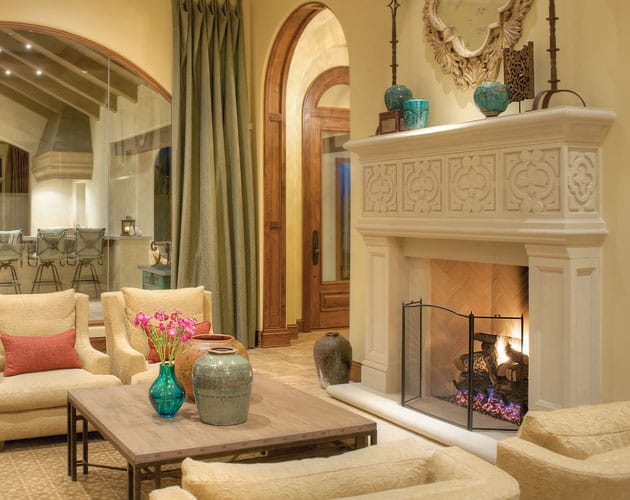 Even if your room is on the smaller side, incorporating a fireplace based on your ceiling height can help the fireplace look proportionately appropriate. Here are Old World Stoneworks, we advise clients to account for all variables.