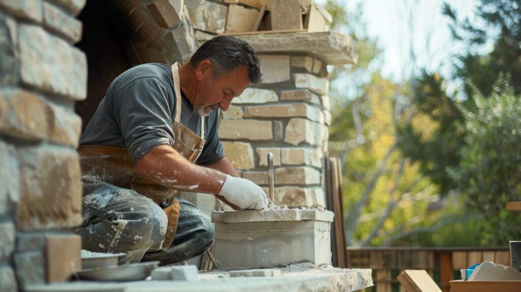 An alternative to taping the joints is to use a water saturation method. Overgrout the stone fireplace by saturating the stones thoroughly with a 5-gallon garden sprayer. The stones should soak up as much water as possible, preventing the grout from discoloring the joints. It’s crucial to saturate the stones completely before grouting to ensure no taping is needed. As you grout, use clean sponges to keep the stone surface free of excess grout. Continuously rinse and replace the water in your bucket to keep the sponges clean.