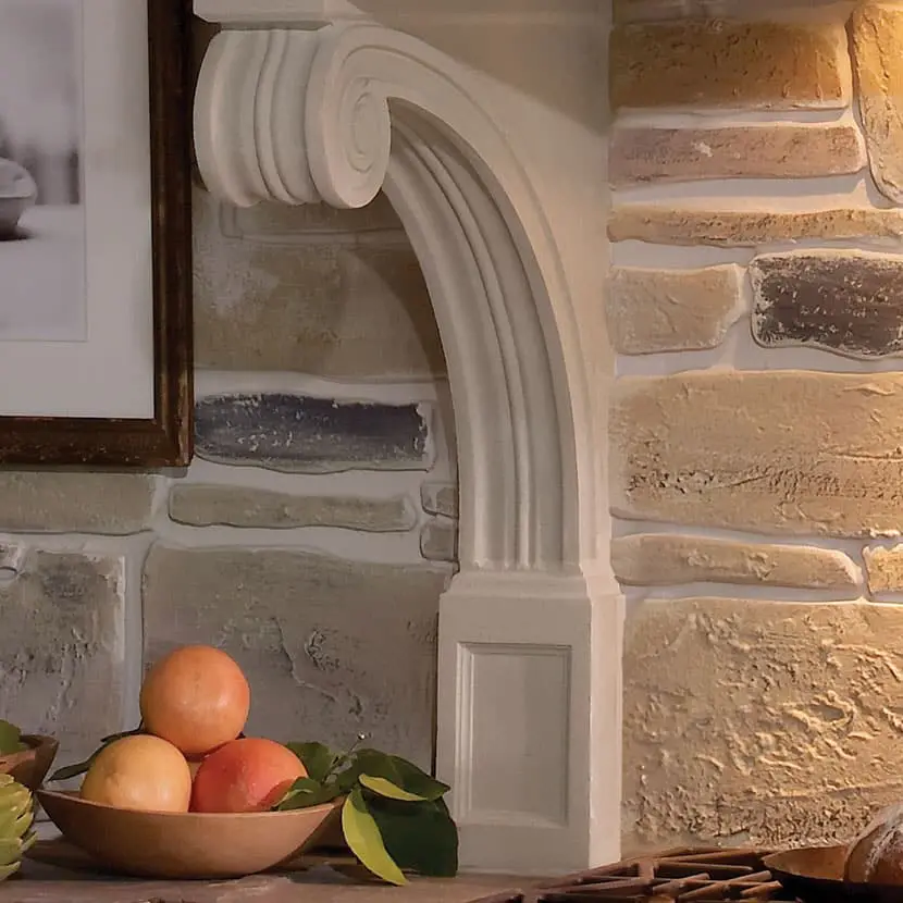 From Greece to Italy and England to France, the Rothchild stone range hood was inspired by international travels. Bring your family and friends together around warm meals from around the world inspired by this classically designed range hood. Its many European-inspired design sentiments feature details like keystone features and stylish Acanthus leaf, all of which also resemble our Rothton cast stone mantel.
