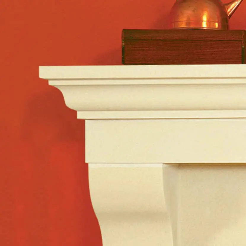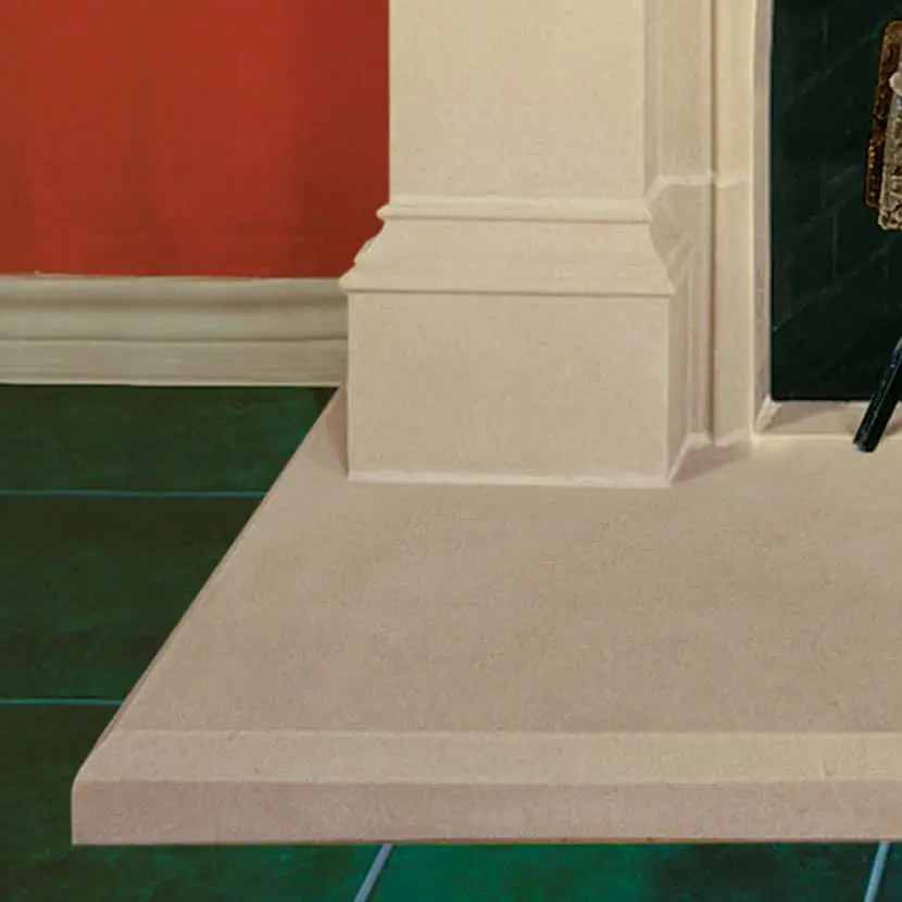 Crafted from man-made limestone, the captivating design of the Stamford mantel seamlessly complements any décor, blending neutral elegance with quality craftsmanship.